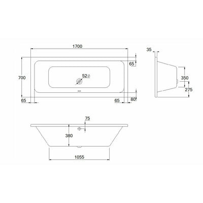 Double-Ended Bathtub - 1700 x 700mm | Saneux Stetson
